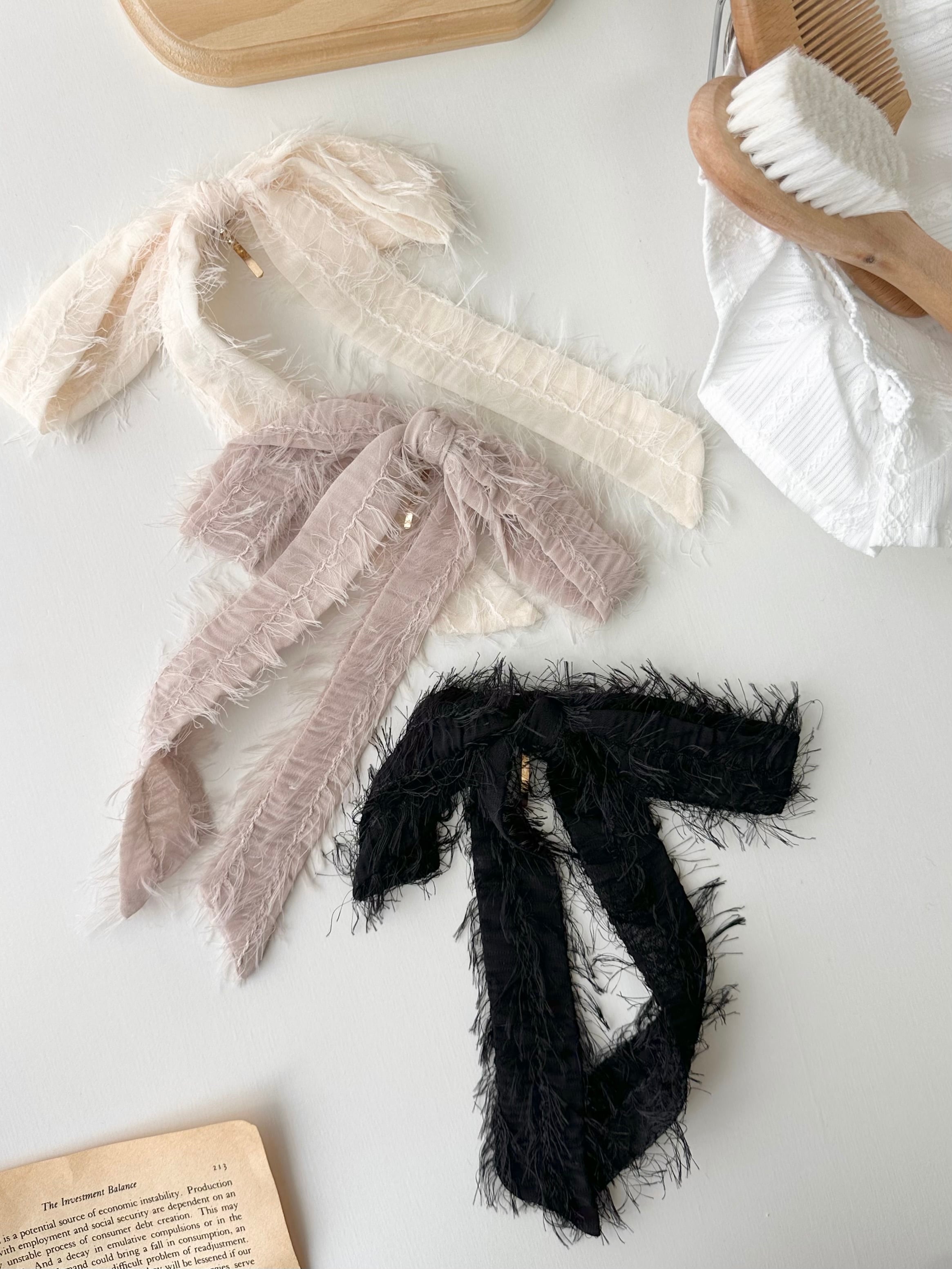 シャギー素材のリボンポニーフック