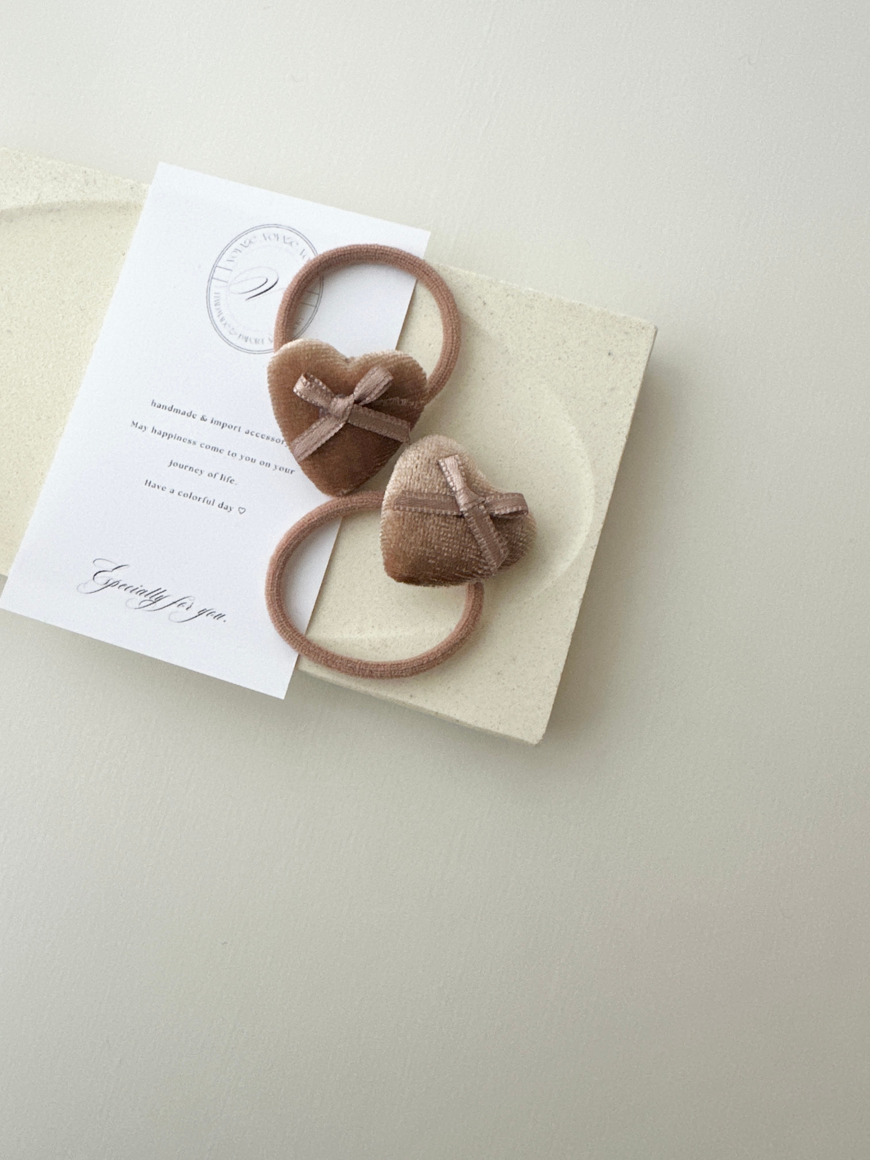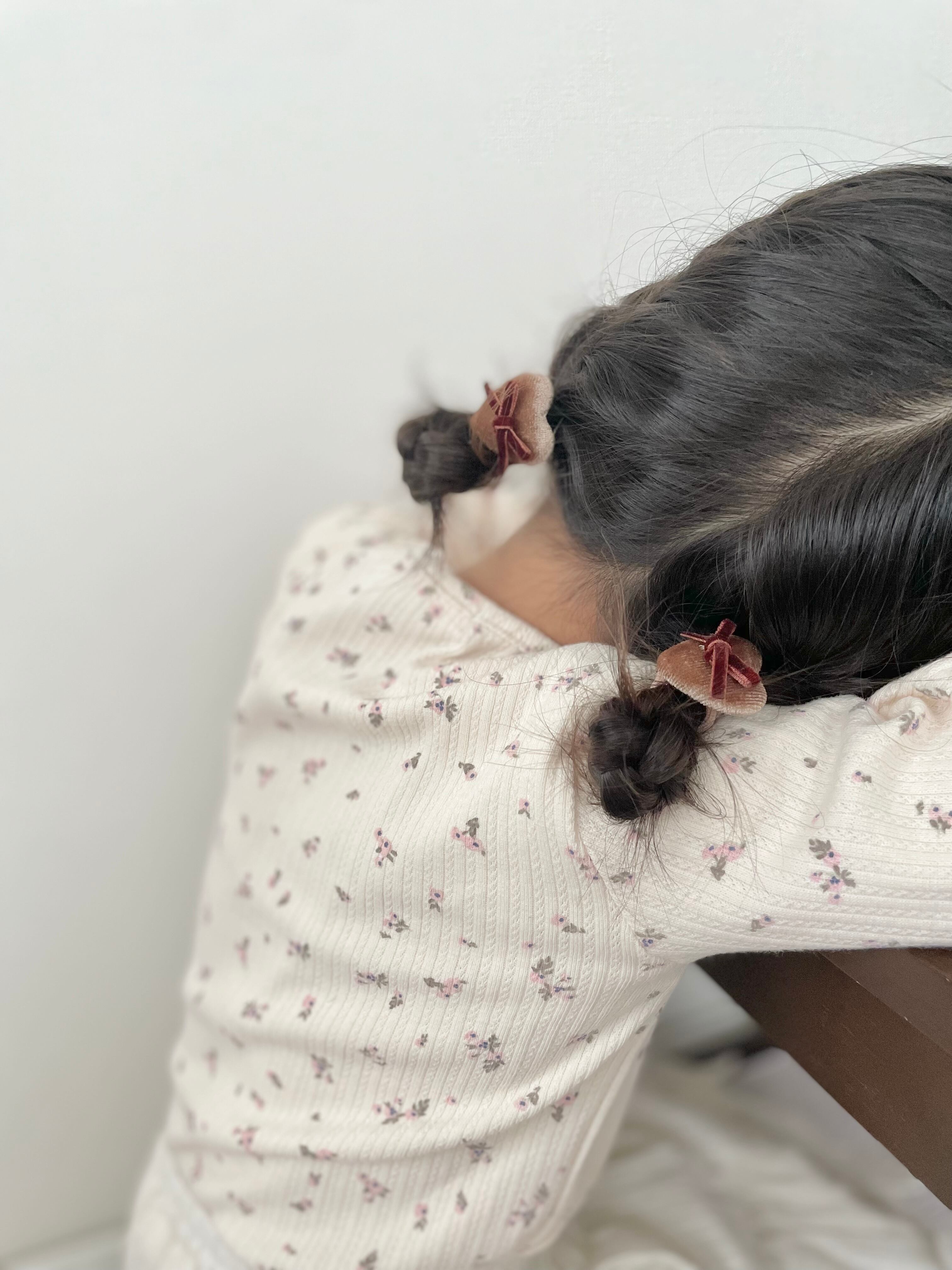 ベロア素材のハートにリボンを