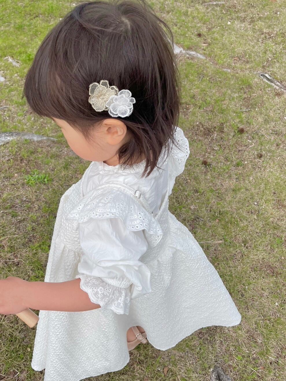お花モチーフのヘアクリップ。